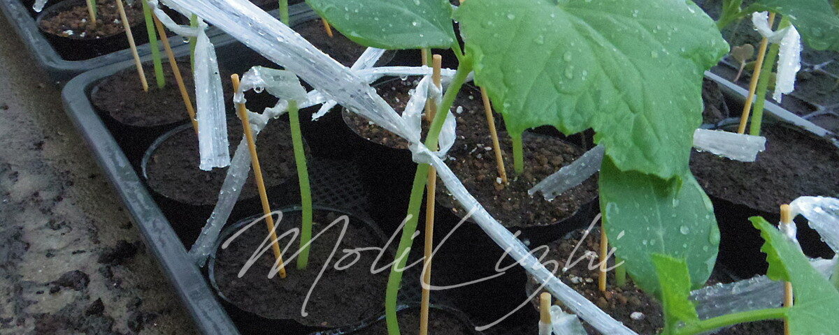 胡瓜の苗です。 どうして「風神」という名をもらったのだろうか?、、と問おても答えてくれません。 鉢のなかに根が回るまでもう少し時間がありますね、